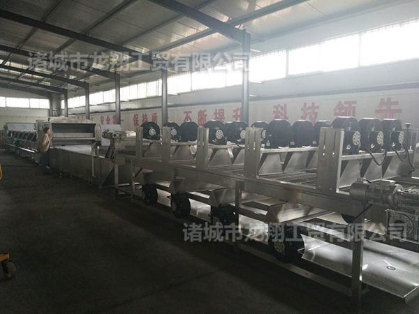 在食品、飲料、制藥等行業(yè)中,要求對一些包裝完畢的產(chǎn)品進行水浴滅菌。被包裝好的產(chǎn)品放在可調(diào)速的不銹鋼網(wǎng)帶上,在傳送帶的作用下按序進人滅的箱體內(nèi),經(jīng)由“高溫水為介質(zhì)”殺菌后,再由另一條傳送帶帶入冷卻箱體內(nèi)均勻冷卻,從而達到產(chǎn)品殺菌要求,后面接著進入連續(xù)風干線可直接裝箱。該系列設備連續(xù)運轉(zhuǎn),已滅菌的包裝產(chǎn)品被源源不斷送入下一-生產(chǎn)工序。